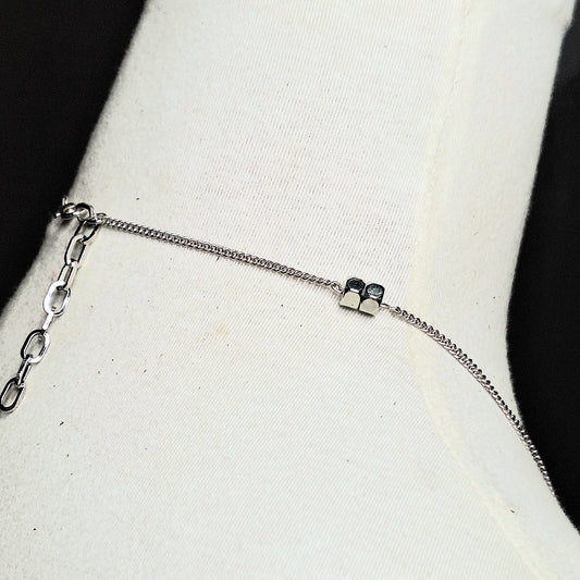 Silver Barbed Wire Pendant Necklace. Geometric silver squares adorn the barbed wire. Faceted clear crystals. Handmade.