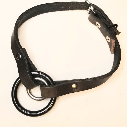 The Cobra, Double O-ring Choker. Handmade, Genuine Leather, Multifinish. Riveted and adjustable buckle closure. Olive leather. Vegetable tanned. Available in multiple colors.