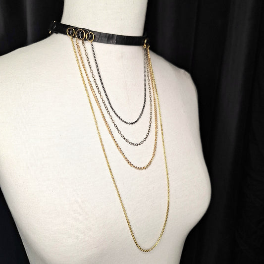 Copy Kat Multifinish Draped Chain & Leather Collar