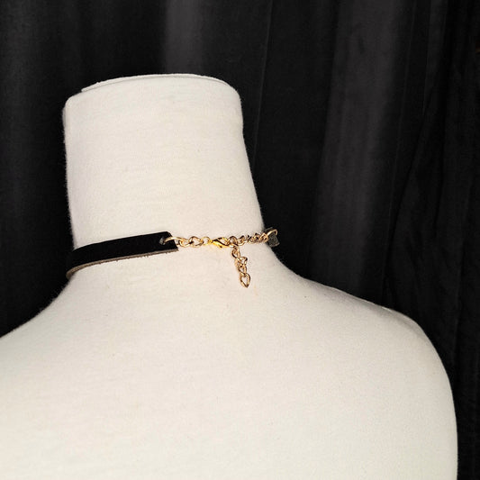 Love Shackle Gold and Black Leather Choker. Handmade. Adjustable closure.