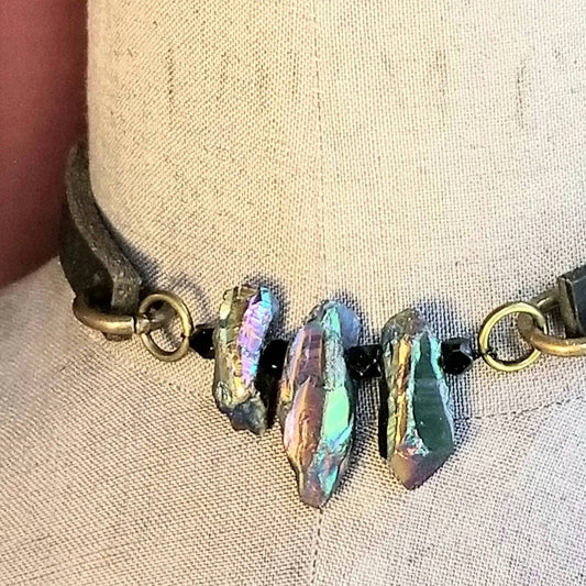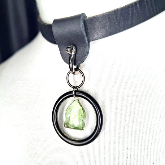 Cristal Vert 🖤 Green Amethyst & Black Leather Choker. Handmade.