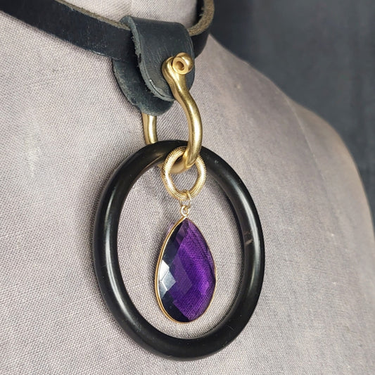 Violetta. Teardrop Amethyst and O-ring Leather Collar. Handmade.