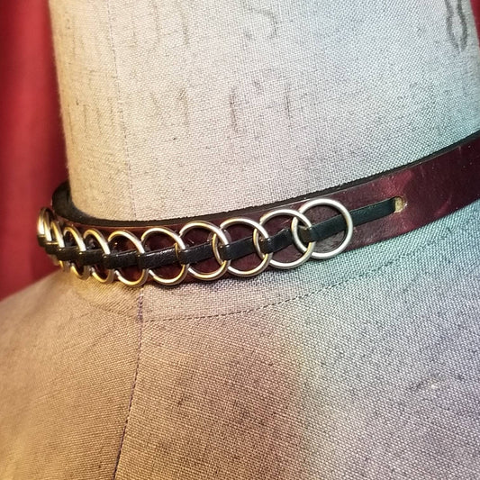 Bevel Up Brass Oval, Black Leather Choker. Handmade.
