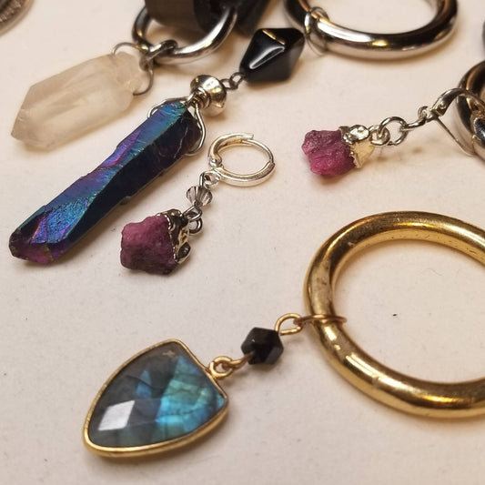 Labradorite gemstone pendant on 1" O-ring and interchangeable leather choker. Handmade. Customizable.
