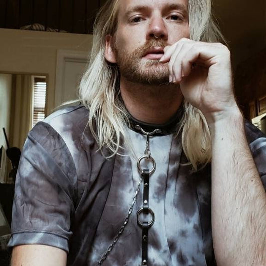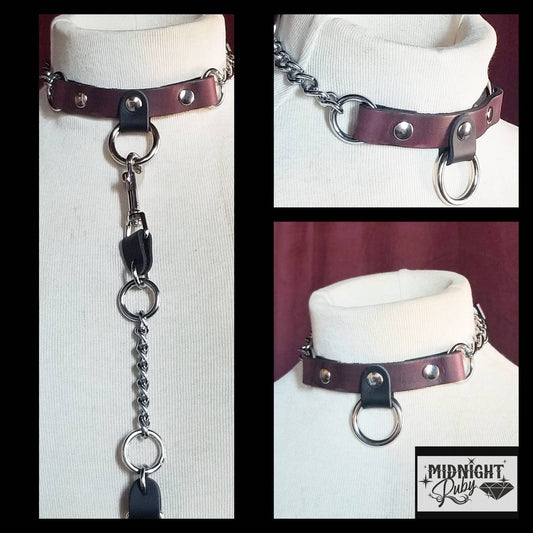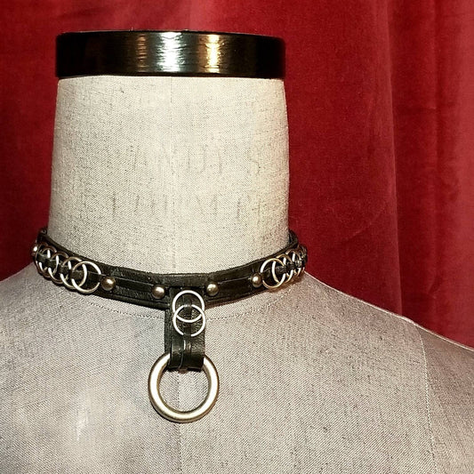The Aura. Triple O-ring, Plum Leather Collar. Handmade.