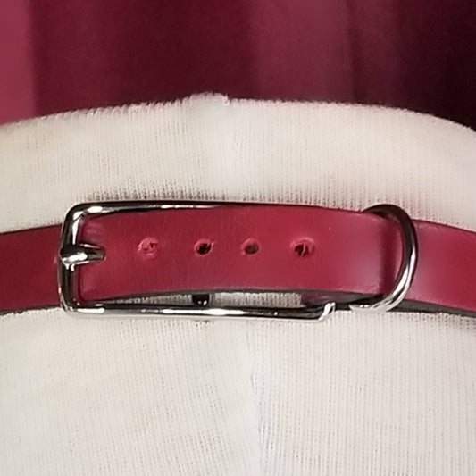 The Edgar, Genuine Red Leather, and Silver Curb Chain Choker. Buckle closure. Men's or women's. Custom made.