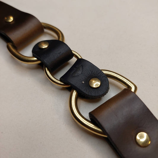 Beverly leather necklace with beveled edge antique brass O-ring. Handmade.