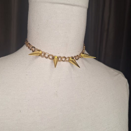 Glam Punk Gold. A spiked necklace for the sophisticated punk. Adjustable chain closure.