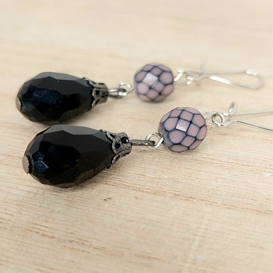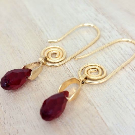 Amethyst Gemstone & Vintage brass heart charm earrings. Handmade. One-of-a-kind.