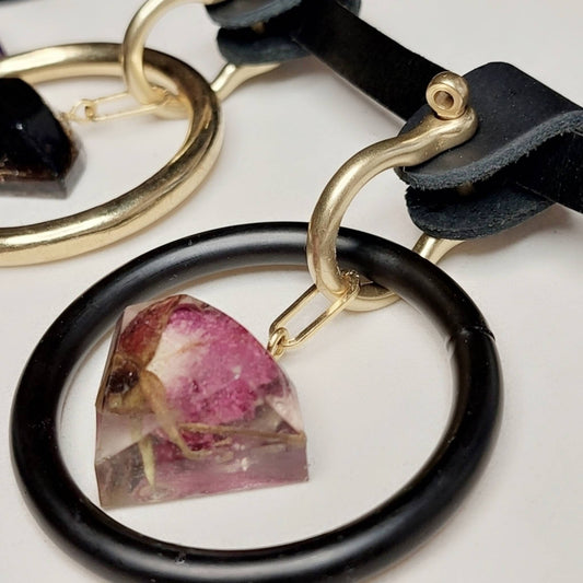 Athena Black Leather, Black Steel, & Gold ring with Amethyst Stone Detail. High end Materials. Handmade.