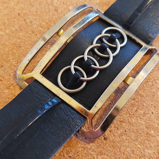 The Python. Flat Franco, gunmetal chain with 2" black O-ring and brushed silver Ouroboro. The chain wraps around the neck through the leather connector and can be worn several ways. Handmade.