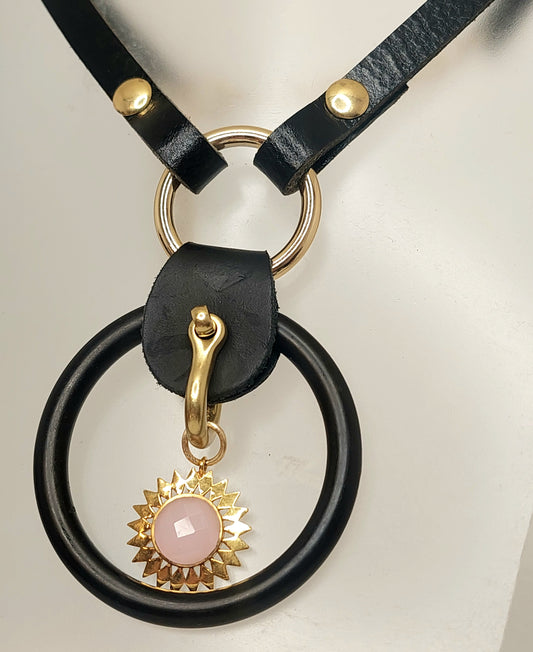 Pink Quartz Sunburst & Steel Oring Collar. Handmade.