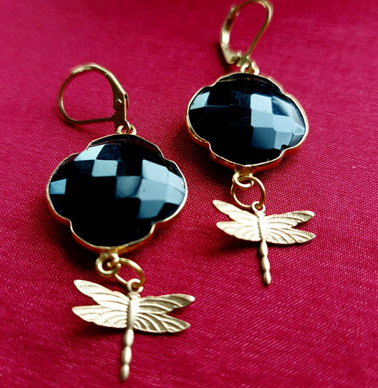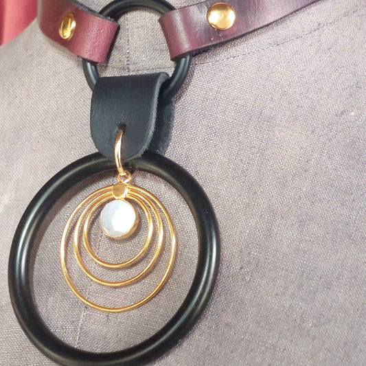 Luna Collar. Black Chic Leather, Moonstone pendant & Black Steel O-ring.