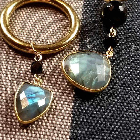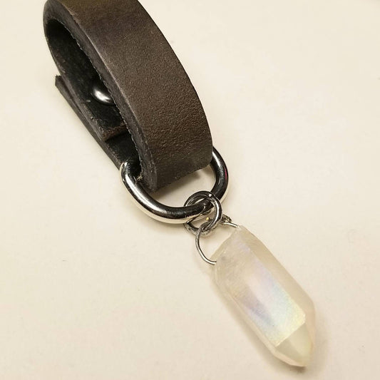 Labradorite gemstone pendant on 1" O-ring and interchangeable leather choker. Handmade. Customizable.